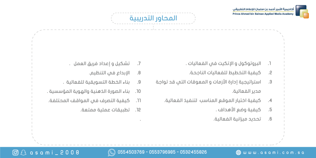 أكاديمية الأمير أحمد بن سلمان للإعلام التطبيقي On Twitter نراعي افضل مستويات التدريب التطبيقي والمهني في برنامج المذيع الشامل والذي ينطلق بدفعته التاسعة في 15 4 2018 للتسجيل 0554503769 0553796985 Https T Co Rixydwtjjt