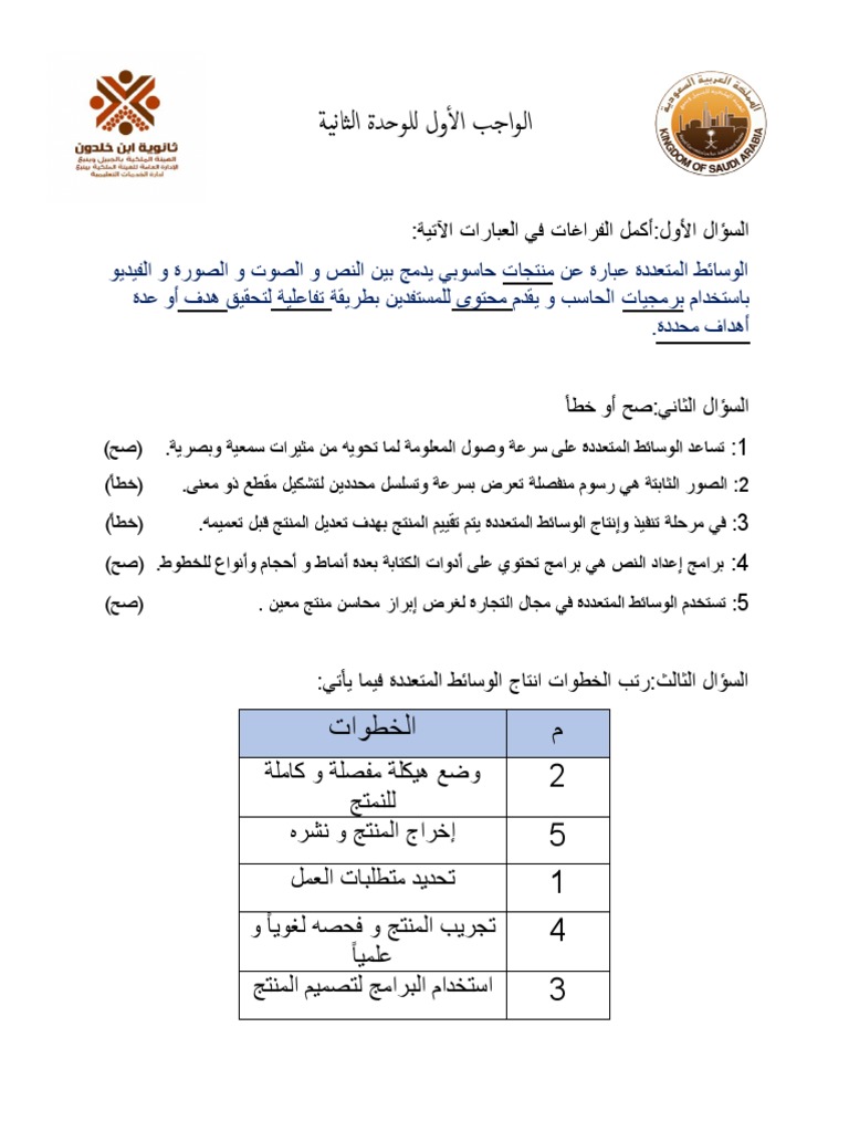 الوحدة الأولى الوسائط المتعددة ملف إنجاز الحاسب
