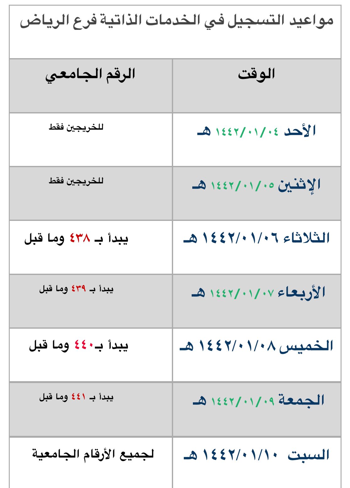 الإرشاد الأكاديمي On Twitter مواعيد التسجيل في الخدمات الذاتية فرع الرياض