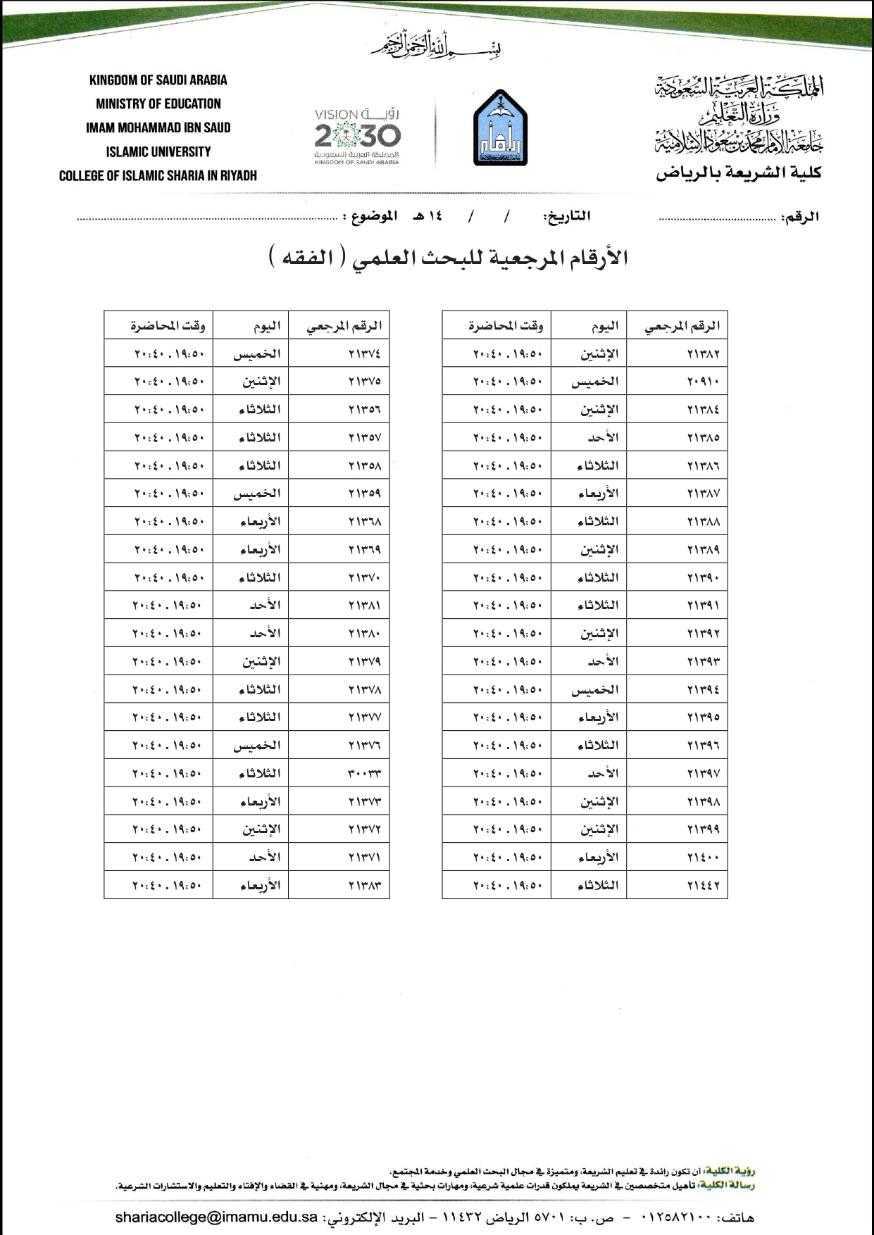 كلية الشريعة بالرياض V Twitter للطلاب الأرقام المرجعية للبحث العلمي الفقه